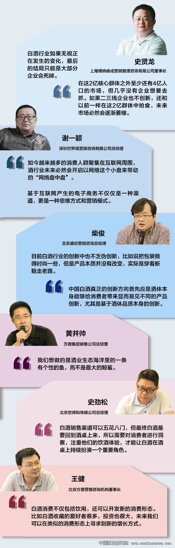 “在这2亿核心群体之外至少还有4亿人口的市场,但几乎没有企业想要去抓。大企业不去抓还可以理解,因为他们需要靠品牌和控制短缺创造价值链,但如果二三线企业也不创新,还和以前一样在这2亿群体中抢食,未来市场必然会逐渐萎缩。”史贤龙认为,“白酒行业如果继续无视正在发生着文章来源华夏酒报的变化,最后的结局只能是大部分企业会死掉。”
