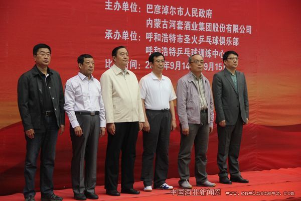 9月14日上午,由巴彦淖尔市人民政府、河套酒业集团主办,呼和浩特市圣火乒乓球俱乐部、呼和浩特乒乓球训练中心承办的“河套王杯”内蒙古地区2013年乒乓球团体争霸赛隆重开幕。出席开幕式的领导有:原自治区人大常委会常务副主任雷•额尔德尼,自治区人大常委会委员、原呼和浩特市人民政府市长汤爱军,巴彦淖尔市市委副书记马麟,河套酒业集团总经理王永强,副总经理、营销指挥中心总经理贺恒辉等。仪式由巴彦淖尔市政府副市长李理主持。
