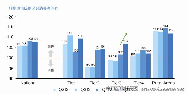 根据近期尼尔森公司所做的一项市场调查显示,中国消费者的消费信心指数自2012年第二季度以来便保持着平稳的恢复增长幅度,到2013年一季度末,中国消费者信心指数已接近5年来的峰值。值得特别注意的是,这一峰值出现的时间正是2012年一季度时间段内,从当年二季度开始,国内消费信心指数骤然下跌,随后以相对平稳的幅度逐渐恢复增长,中国消费者的消费意愿自2012年二季度以来同样保持着持续增长的态势。这与白酒市场的拨动轨迹有很多吻合之处。