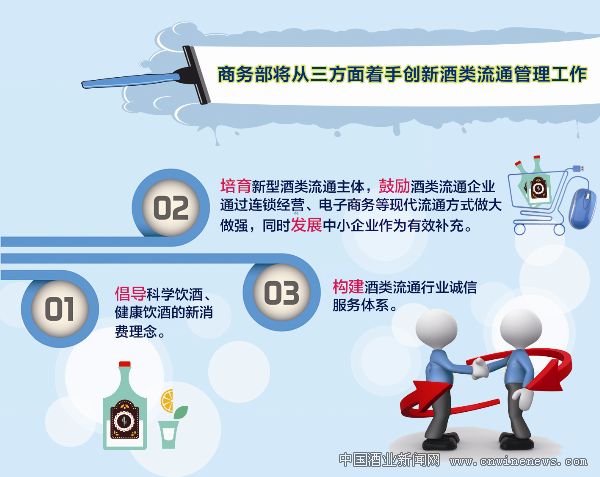 据了解,为了让百姓喝上放心、安全、价位合适的酒,下一步,商务部将从三方面着手创新酒类流通管理工作。
