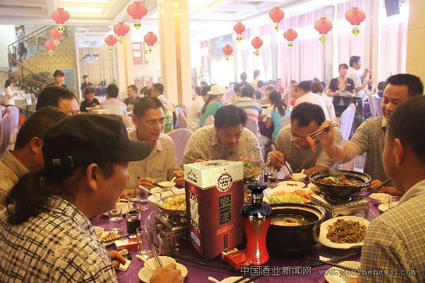 在马鞍山市饶有名气的鑫宝大酒店,一对新人的婚礼正在隆重举行。酒桌上红彤彤的宣酒喜气盈盈地整齐排列。为了不打扰新人的婚礼,记者选择临近的酒桌,与宾客攀谈起来。“宣酒包装喜庆,价格适中,挺好。”宾客说完就端起宣酒,斟满一杯,要让记者也沾沾喜气。