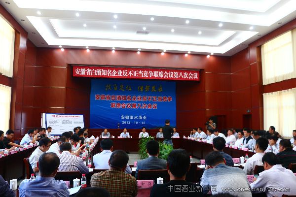 10月9日至10日,由安徽省工商局支持、安徽临水酒业主办的省白酒知名企业反不正当竞争联席会议第八次会议隆重召开。省工商行政管理局及各地市工商管理局分管副局长、经济检察执法局局长出席了会议。古井集团、口子酒业、金种子酒业、迎驾集团、双轮集团、宣酒集团、皖酒集团、文王酒业、明光酒业、缘酒酒业、九华山酒业以及本次会议轮值主席单位安徽临水酒业等12家成员单位分管负责人参加了会议。