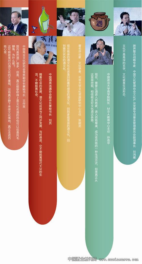 中国政法大学商学院院长、MBA教育中心主任孙选中也表示,中国有很多好酒,关键是怎么和老百姓的价值观联系起来,真正和文化联系起来。文化就是一种生活,也是一种生活方式,怎么和这些联系起来,是比较关键的。今天一讲酒文化,几乎是士大夫文化,文人墨客文化,关键是这个文化和老百姓文化怎么联系起来。中央八项规定一出来就阻断了行政酒文化。现在,需要让酒进入百姓家,进入百姓餐桌,成为老百姓的一种生活方式。如果真正从这里面挖掘,相信能走好文化酒这条路。