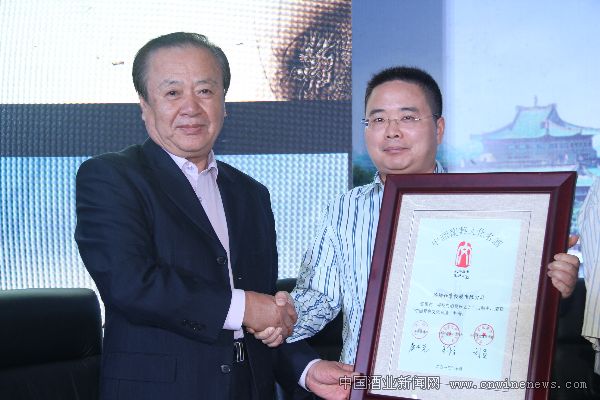 向洛阳酒祖杜康销售有限公司总经理苗国军(右)授牌