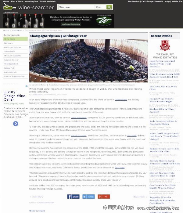 香槟产区酿酒葡萄的采收工作已接近尾声,生产商和酿酒师称,2013有望成为好年份。