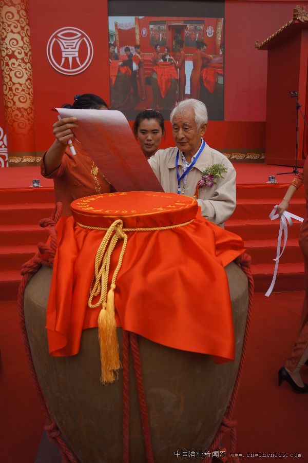 中国轻工业联合会、中国酒业协会、中国食品工业协会联合主办,由山东省轻工业协会、山东省食品工业协会、山东省糖酒副食品商业协会、山东景芝酒业股份有限公司、齐鲁酒地文化发展股份有限公司等代表将印有“景芝私家窖藏 国标景芝原装酒”的红色纸条贴到酒坛上,并庄重地题上了自己名字。