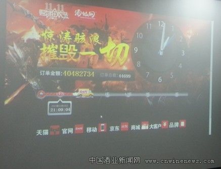 在凌晨1点的时候,酒仙网计数板上显示的数字已经达到了40482734元,几乎相当于去年双十一全天业绩的2/3还多;订单总数达到44699单,客单价近千元。据酒仙网董事长郝鸿峰介绍,“4000万还不是最后的准确数字,我们数据的后台还积压着几千张订单,都是已经确认好了订单但是支付宝还在排队等待结账。”