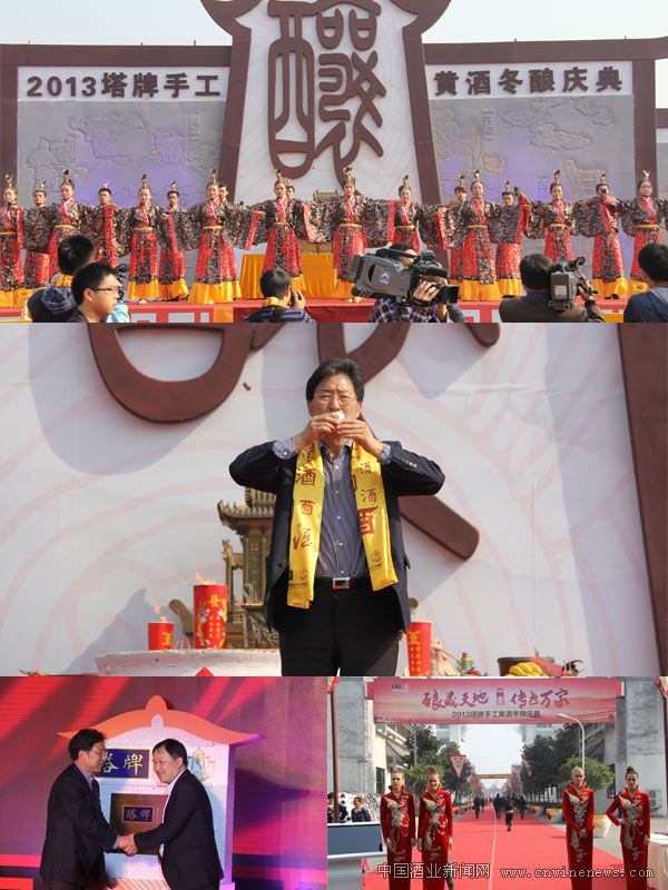 11月7日,农历立冬。上午,旭日高照、晴空万里,位于酒乡绍兴鉴湖源头的浙江塔牌绍兴酒有限公司厂区内彩旗林立、酒招飘扬,到处洋溢着一片节日的喜庆气氛,由浙江省粮油食品进出口股份有限公司、浙江省老字号企业协会、中国绍兴黄酒产业基地管委会主办的 “2013塔牌手工黄酒冬酿庆典”在此隆重召开。