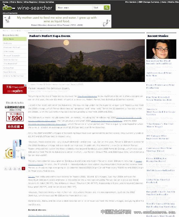 自今年初Antonio Galloni 离开《葡萄酒倡导家》杂志后,全球最具影响力的葡萄酒评论家罗伯特·帕克又重新开始品评加州酒,并从中选出了12款百分酒。