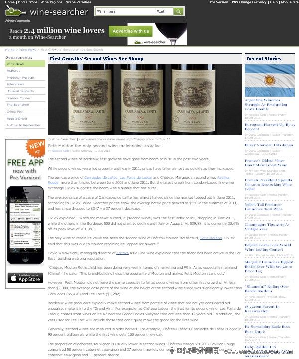 从伦敦精品葡萄酒交易所 (Lix-ex)的数据可看出,这种繁荣一直持续到到2011年上半年。从2009年到2011年,拉菲、玛歌的副牌价格几乎翻了三番,而之后的价格几乎以同样的速度开始下跌。目前看来,先前的繁荣已经破灭。