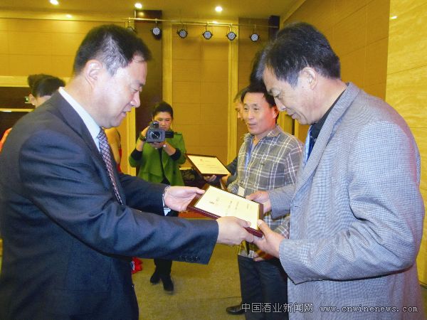 国宾酒庄董事长刘长庭为酒庄会员颁发大桶酒认购证书。 转载此文章请注明文章来源《华夏酒报》。