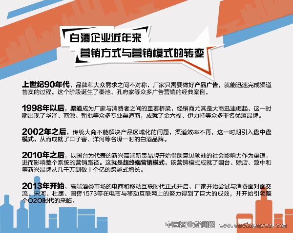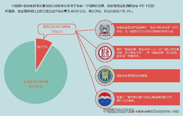 2013年白酒市场的低迷表现尤其反映在高端领域,无论名酒品牌还是区域性品牌,受严格限制政务消费的影响,其传统高端产品销文章来源华夏酒报量锐减,面临着向商务化、私人化消费转型的现实挑战。在这种市场背景中,定制酒成为高端酒领域的突出亮点。由于其更多关注消费者以及特定消费群体的实际需求,通过个性化的产品元素以及创新的体验式营销,来重新诠释高端价值,由此实现了销量和口碑的同步提升。