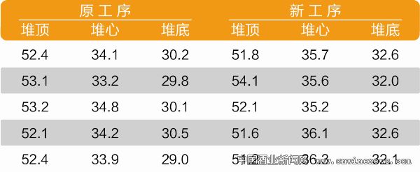 由表4可知,改进后有利于发酵酒醅,提早结束有氧糖化升温阶段,增加厌氧发酵产香阶段。