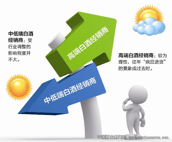 经销商迎来行业、市场的考验。事实上,自去年春节以来,作为直面市场一线的流通业代表,白酒经销商越来越感受到来自市场的“阵阵寒意”,高端受阻、需求趋缓已成定局。