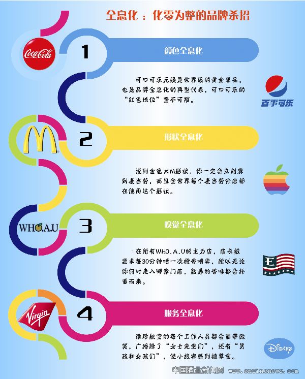 全息化品牌就是以品牌受众的感官反应,比如颜色、导航、材质、声音和形状等为基础,从不同的角度和由很多不同的元素建立品牌。