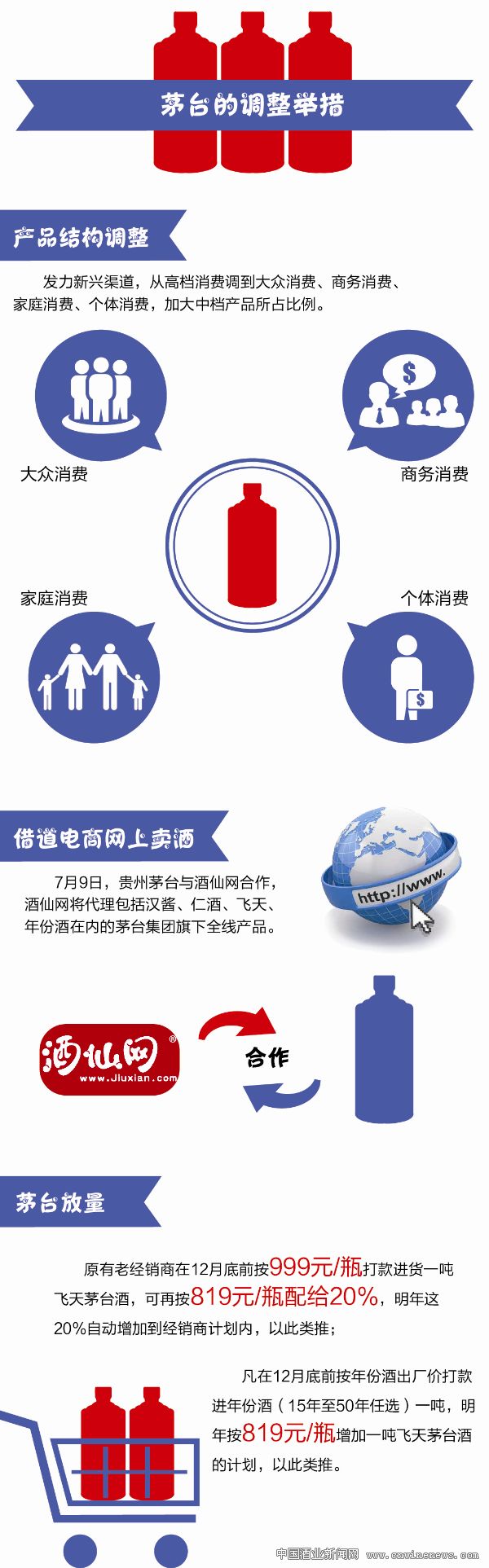 同时,要将电商融会贯通于酒企的每一个思想角落。要认识并且理解电子商务线上业务的模式、规模、影响力,以及未来明确向上的趋势和巨大的潜力,并从电商渠道、品牌、产品、服务、人才等方面综合考虑公司未来电商的发展和基础组织架构。这样才可能把电商业务真正做起来,做长久,直至在电子商务变化迅速的市场环境中立于不败之地。