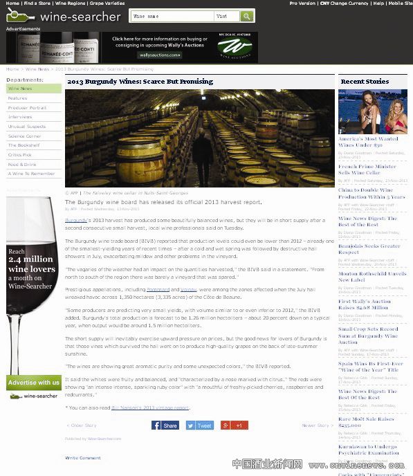 勃艮第葡萄酒行业协会(BIV文章来源华夏酒报B)发布了2013年官方葡萄收成报告,称今年的酿酒葡萄产量在低产的2012年份基础上再度下降,不过仍有望酿出优质平衡的葡萄酒。