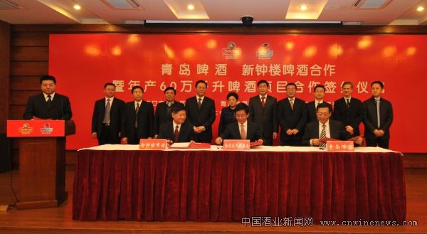 青岛啤酒与新钟楼啤酒合作暨年产60万千升啤酒合作项目签约。