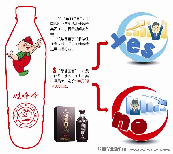 2013年11月5日,中国饮料业巨头杭州娃哈哈集团在北京召开新闻发布会,该集团董事长兼总经理宗庆后正式宣布娃哈哈进军白酒行业。