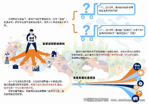 2013年,随着行业调整向深度前行,调整压力开始倒逼行业渠道格局产生变革。纵观全年,黄酒行业开始逐步打破传统单一渠道的限制,逐步向多元化渠道分布趋势转移。相比于以往以家庭饮用的餐饮渠道为主和过度倚重流通渠道做市场,目前黄酒正在向电商渠道、专卖店网络、连锁终端试水,渠道建设蔚然成风。