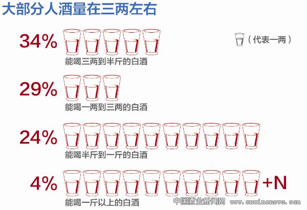 过年过的就是除夕之夜,那么大家在年夜饭上究竟有多能喝呢?34%的网友在年夜饭上能喝三两到半斤的白酒,29%的网友最多喝过一两到三两的白酒,还有24%的网友最多能喝半斤到一斤的白酒。而仅有4%的重量级网友在年夜饭上喝了一斤以上。在此,酒评网提醒广大消费者,喝酒养生,酒醉伤身,就算是除夕之夜,大家也要适可而止。