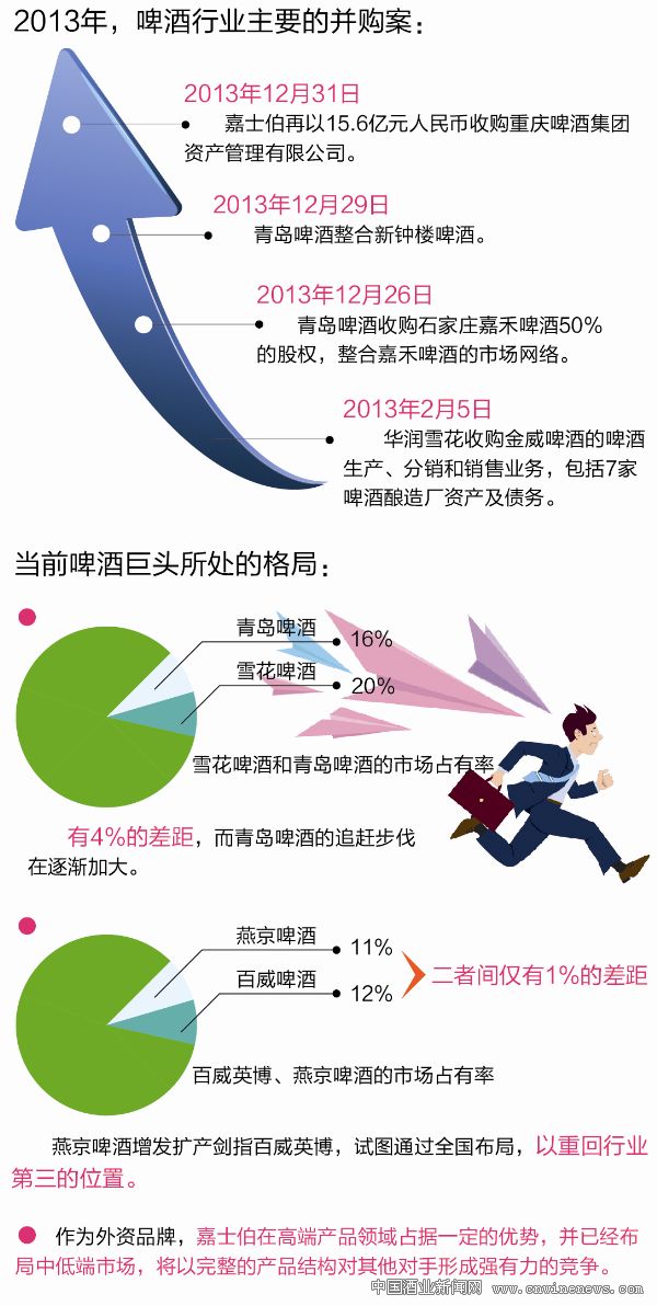 昔日珠三角霸主和西南啤酒巨头相继被整合收编,这是啤酒行业2013年发生的两宗大收购案,而随着大面积的并购整合接近尾声,中国啤酒行业也开始打响并购收官之战。