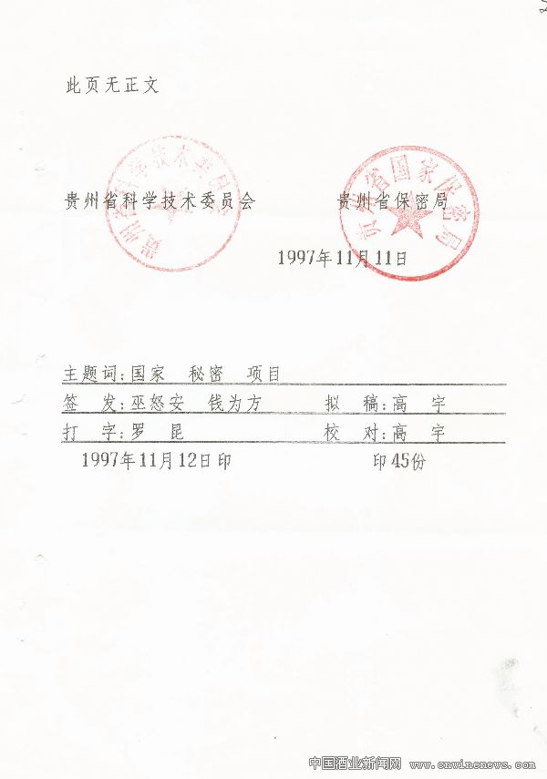 1997年,董酒经国家科委组织专家审查,确定为国家秘密的项目(见图二);