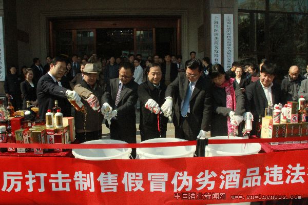 为深入宣传贯彻酒类法律法规,提高公众酒品安全意识,展示酒类执法打假成果,加强行业自律能力,3月15日,由上海市酒类专卖管理局、虹口区商务委员会、上海国际酒类现代商贸服务功能区与上海市酒类产品质量检验中心共同举办的“维护消费者合法权益,保护消费者饮酒安全——3·15假冒酒销毁暨酒类法规、酒品检测、消费安全宣传活动”在虹口“酒博会”隆重举行。