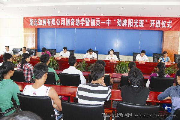 劲牌公司立足事关民族发展和未来“百年大计”的教育事业,把助学作为公益事业中的重中之重。劲牌慈善“阳光班”是劲牌公司进一步贯彻落实“科教兴国”发展战略,为我国特困、特优的初中应届毕业生提供继续学习机会,帮助其完成高中学业的阳光工程。“阳光班”每班受助学生50名,每人每年从劲牌公司领取3000元的生活资助,直至顺利完成高中学业。