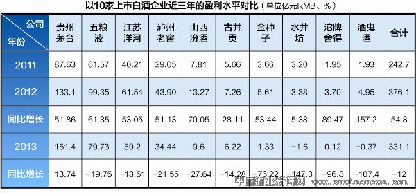 从2012年开始,白酒行业步入了一个新的调整期;2013年,仅因严控“三公消费”等措施出台,白酒行业的业绩出现了大幅下滑,有甚者出现了负盈利。