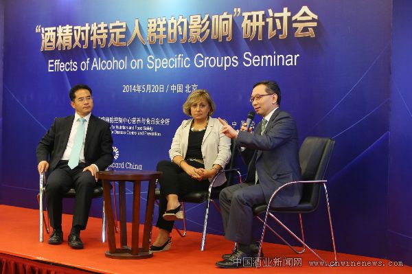 中国疾病预防控制中心营养与食品安全所副所长马冠生、国际酒精政策中心副总裁Marjana Martinic、保乐力加中国董事总经理危永标接受媒体采访