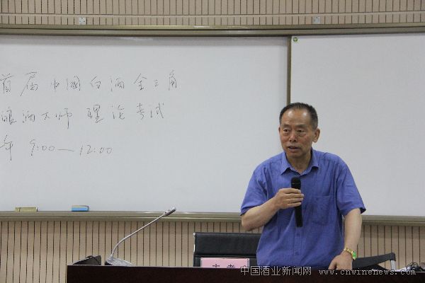 图一:本次“双大师”考试委员会主任委员、四川中国白酒金三角酒业协会会长王国春在考前讲解考试规则。