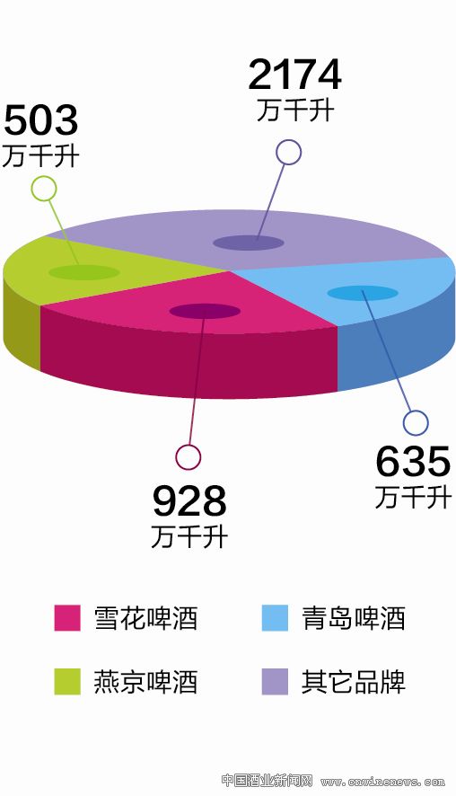 雪花、青岛、英博百威都将长期成为千万吨级别的啤酒寡头。英博百威在中国未来5年将布局8~10个100万千升的生产基地,加上现有500万千升的生产量,总量直逼1500万千升。