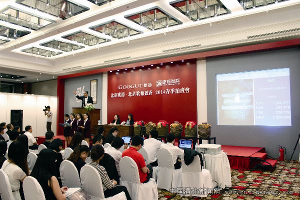 6月1日晚8点,2014歌德盈香春季拍卖会西凤·原封酒海老酒专场如期举行,全场座无虚席,陕西西凤酒股份有限公司CFO、西凤定制酒公司董事总经理袁戌宇,西凤定制酒公司常务副总赵绪豪以及歌德董事长刘晓伟也都亲临现场。