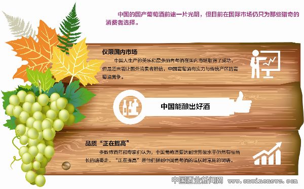 法新社报道称,中国的国产葡萄酒前途一片光明,但目前其在国际市场仍只为那些猎奇的消费者选择。中国葡萄酒要在世界上获得认可,还有相当长的路要走。