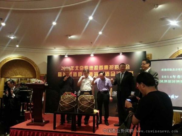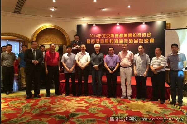 5月31日下午18点,北京凯宾斯基酒店隆重召开了“2014年北京歌德盈香春拍招待会暨西凤酒原封酒海老酒品鉴晚宴”。中国食品工业协会白酒专业委员会秘书长勇马勇、陕西西凤酒股份有限公司总经理徐可强、茅台集团名誉董事长季克良、北京歌德盈香董事长刘晓伟等出席晚宴并致辞。