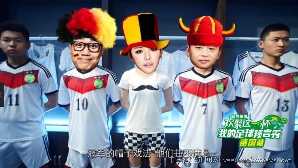 另一阵营的阿根廷迷小孟一群哥文章来源中国酒业新闻网们也好不甘示弱,战胜荷兰他们彻底的兴奋了,“爱战神,爱老马,爱风之子爱烟枪,我们一起赢下大力神杯,一起祝福阿根廷。”听到我的足球预言秀里的说唱,说出了哥们几个的心声,三个人大半夜的绑在一起在制作了预言秀MV热闹了好久,分享到朋友圈获得大量互相点赞的吐槽。“祝德国获得2014世界杯亚军,预言帝们静等狂欢“!霸气外漏。