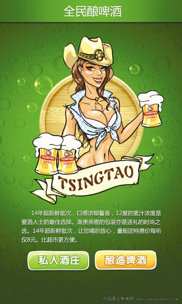 6月28日,在天猫取得不菲业绩的青岛啤酒,又先声夺人宣布“青岛啤酒官方商城”在微信上正式开业,成为首家进驻微信商城的啤酒企业。