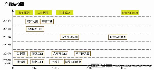 每个板块内部确定一到两款战略核心产品,然后配备更多的其他系列。一方面有效地补充市场上的价位空档,另一方面在主品牌不变的基础上达到累积品牌概念资产,不断“冲击”消费者。比如:头曲板块在确定“精品头曲”为战略核心产品之后,增加老头曲、六年陈头曲是为了弥补精品头曲以下的价格空档,开发青瓷红瓷头曲介于两者之间(与六年陈头曲价位接近)充分反映出其对消费者口感的变化及对产品升级的及时性。