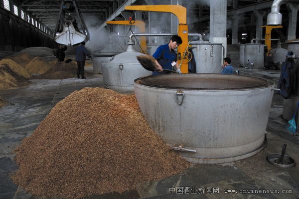 走进半开放式的有利于酿酒微生物繁殖的酿造车间时,现场的气势真是叫人赞叹不已。从拌粮——上甑——蒸馏——摊晾——加曲——入窖池——封窖池,酿酒的重要环节都集中于此。如果不是身临其境,我们平常恐怕很少有人了解酿酒中的奥秘,看着青白色蒸汽不断上升,出酒口源源不断地流出精华的高度原酒,漂亮的酒花在酒桶中闪烁着,这一切就像秋收一样令人兴奋。