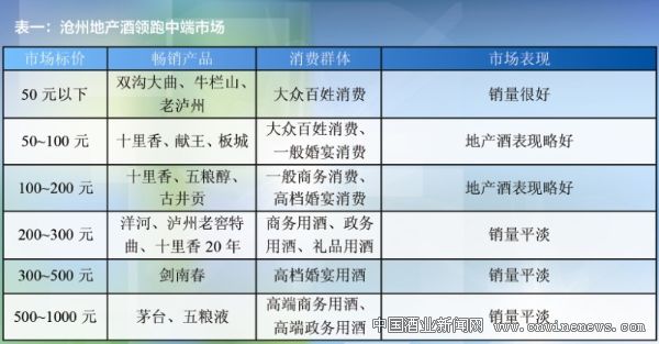 此外,由表一可见,沧州地产高端酒及次高端酒表现乏力,全国性名酒成为沧州高端及次高端市场的绝对主力。