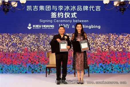 凯吉集团董事长黄凯与李冰冰在签约仪式上