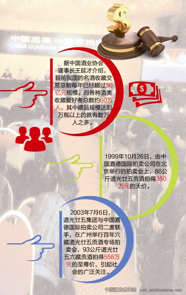 辽宁道光廿五集团满族酿酒有限责任公司董事长张广新坦言,当时他对于白酒拍卖也没有太大的信心。“其实直到起拍之前,就连拍卖公司的人都心里没底。”他回忆着当时情景。事情的起因还要从道光廿五贡酒出土说起,随着消息在国内广为传开,很多消费者视道光廿五为真正经得起历史考证的文化名酒。这一现象引起了中国嘉德国际拍卖公司的浓厚兴趣,这家公司此前因拍卖著名油画《毛主席去安源》和天安门城楼上的“退役”宫灯而名噪一时,对于特殊文化藏品的兴趣非常浓厚。他们登门拜访张广新,提出要给出土的道光廿五贡酒来一次市场拍卖。