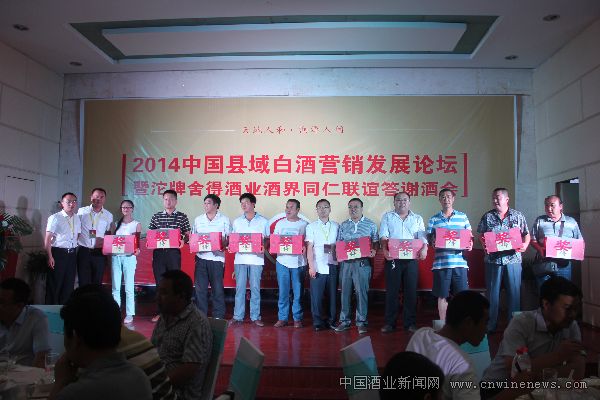 2014年8月5日、8月7日,由全国质量奖获得者,中国生态酿酒领袖品牌-沱牌舍得酒业和定西市酒类协会、天水市酒类协会共同发起的“2014中国县域白酒营销发展论坛暨沱牌舍得酒界同仁答谢酒会”先后在定西天庆大酒店、天水金龙大厦圆满举办。200多家来自定西、天水各区县的经销商受邀参加本次论坛。本次活动在行业低迷时间,为经销商提供一次具有行业高度的咨询、培训服务,让沱牌舍得的情感营销在行业低迷时期得到升华。