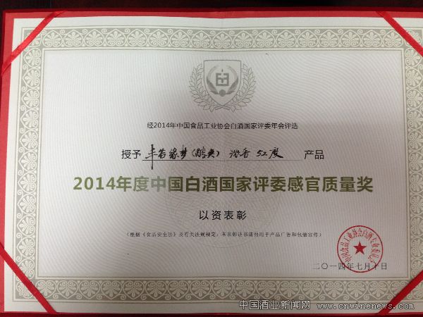 在评酒环节中,与会专家、白酒国家评委对包括丰谷酒业参选酒样在内的86款国家名优酒样进行感官质量品评和综合评审,以暗评形式先后进行了十八轮编号打分,丰谷酒业选送的“浓香型52度丰谷缘梦(醇爽)通过三个环节的筛选获得“2014年度中国白酒评委感官质量奖”。