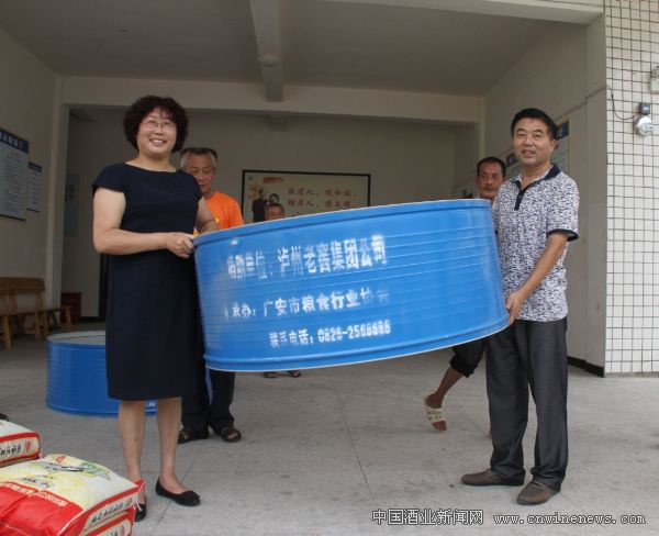 泸州老窖股份有限公司党委副书记、纪委书记、工会主席江域会向农户代表捐赠小粮仓