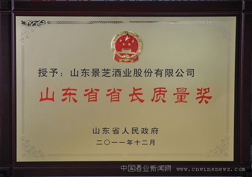 自2009年以来,景芝酒业认真贯彻落实山东省委、省政府振兴山东白酒工业调整规划,始终坚持“质量第一、诚信至上”的理念,构建九环溯源品控体系,建立健全食品安全管控、追溯体系,规范生产,诚信经营,全力打造山东特色白酒知名品牌,实现了企业健康快速的发展,企业在2011年荣获第三届山东省省长质量奖,成为迄今为止唯一获得此殊荣的山东白酒企业,充分树立了景芝酒业在行业的标杆位置。这顶意味着省政府肯定和褒奖的桂冠,前三届获奖酒企获奖企业是青岛啤酒、张裕葡萄酒、景芝酒业;一啤、一红、一白,三个酒种的领军品牌也代表着山东酿酒企业的最高水平和质量标准。