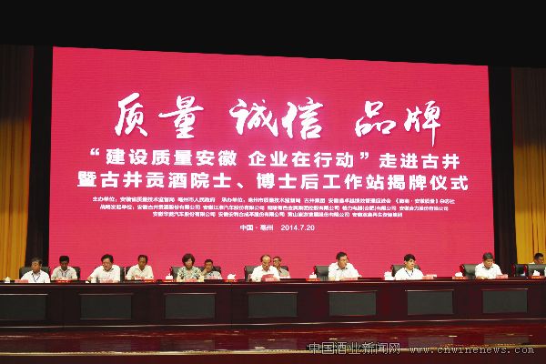 7月20日,以“质量、诚信、品牌”为主题的“建设质量安徽,企业在行动”走进古井暨古井贡酒院士、博士后工作站揭牌仪式在安徽亳州古井生态产业园成功举办。