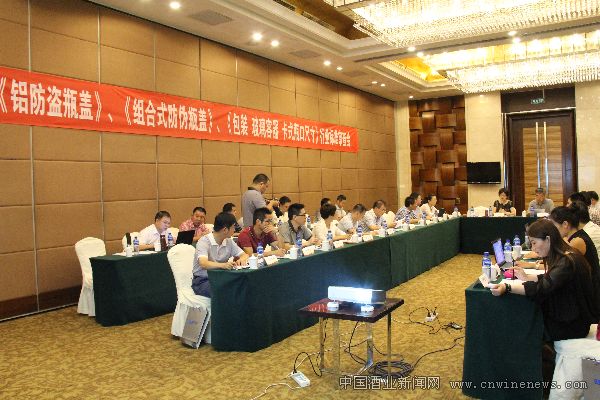 海普制盖股份有限公司、山东丽鹏股份有限公司、北京刮拉瓶盖有限公司等七家制盖企业,四川优派科技有限公司、四川剑南春(集团)有限责任公司、山西杏花村汾酒厂股份有限公司、湖北劲牌酒业有限公司、陕西西凤酒股份有限公司等八大名优酒企,烟台新中萃玻璃包装有限公司、四川省宜宾环球格拉斯玻璃制造有限公司等六家玻瓶制造企业及烟台市质量技术监督局、国家包装产品质量监督检验中心(广州)共计40余位业内专家参加了此次行标审查会。