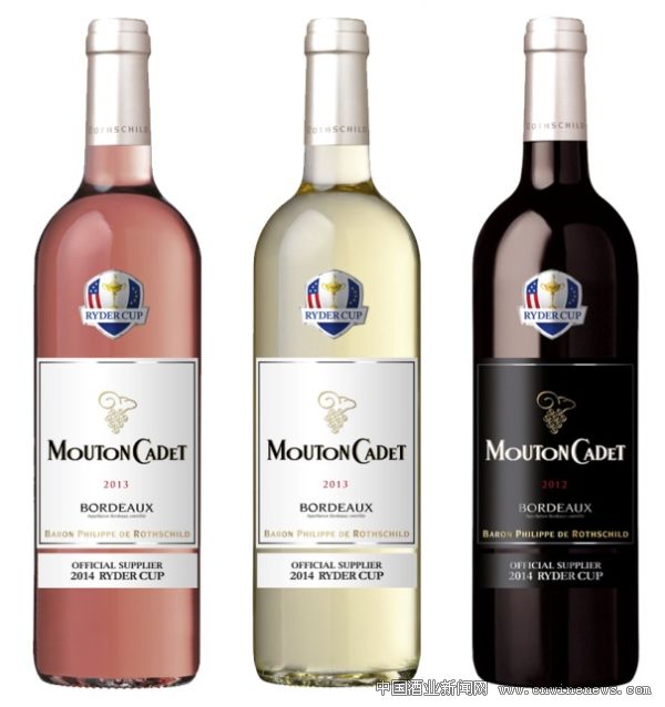 自左至右按顺序:木桐嘉棣莱德杯瑧选版桃红、白、红葡萄酒
